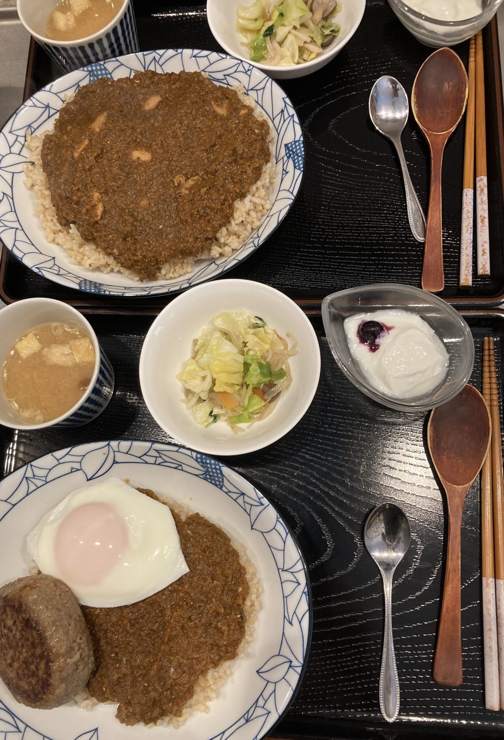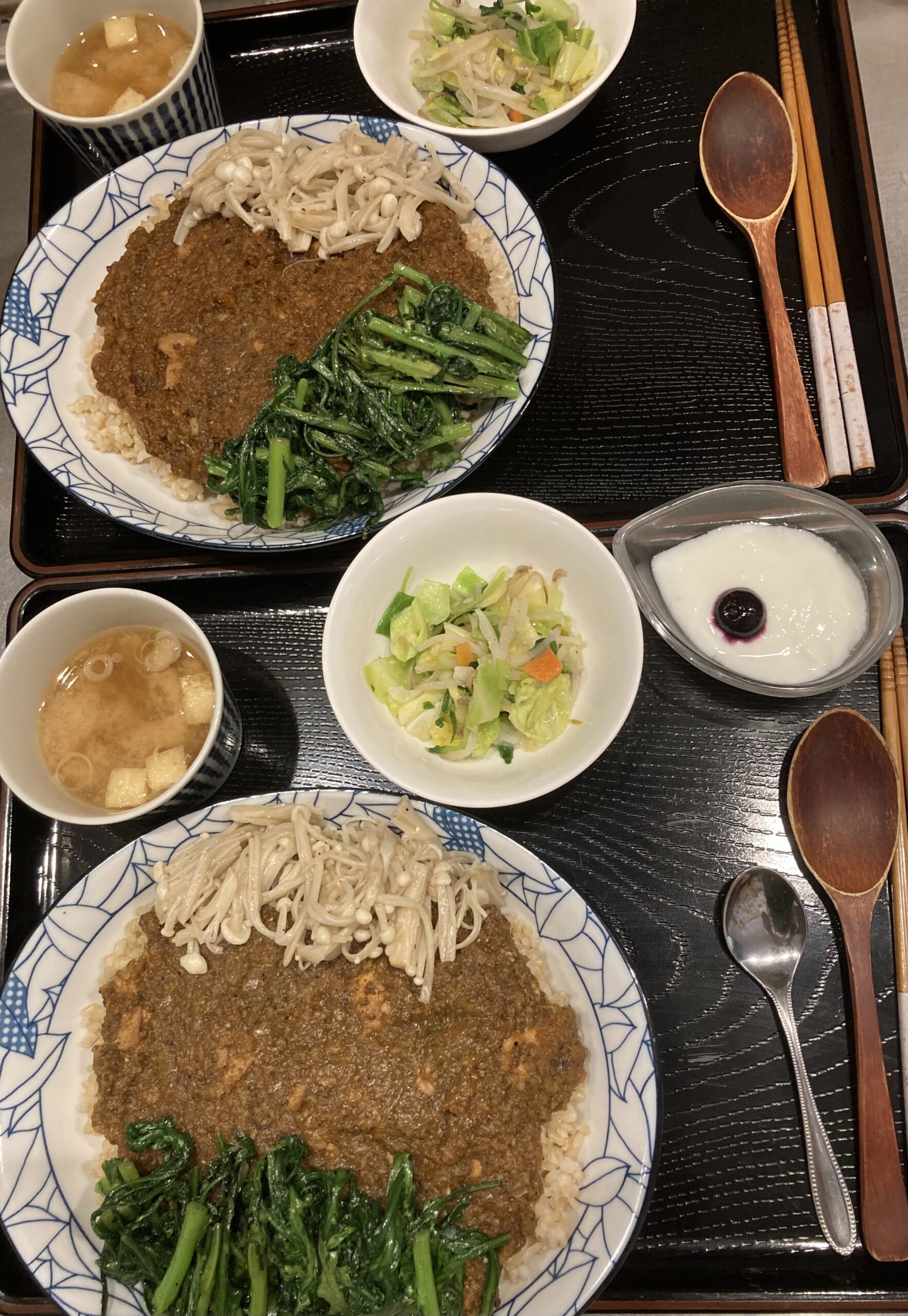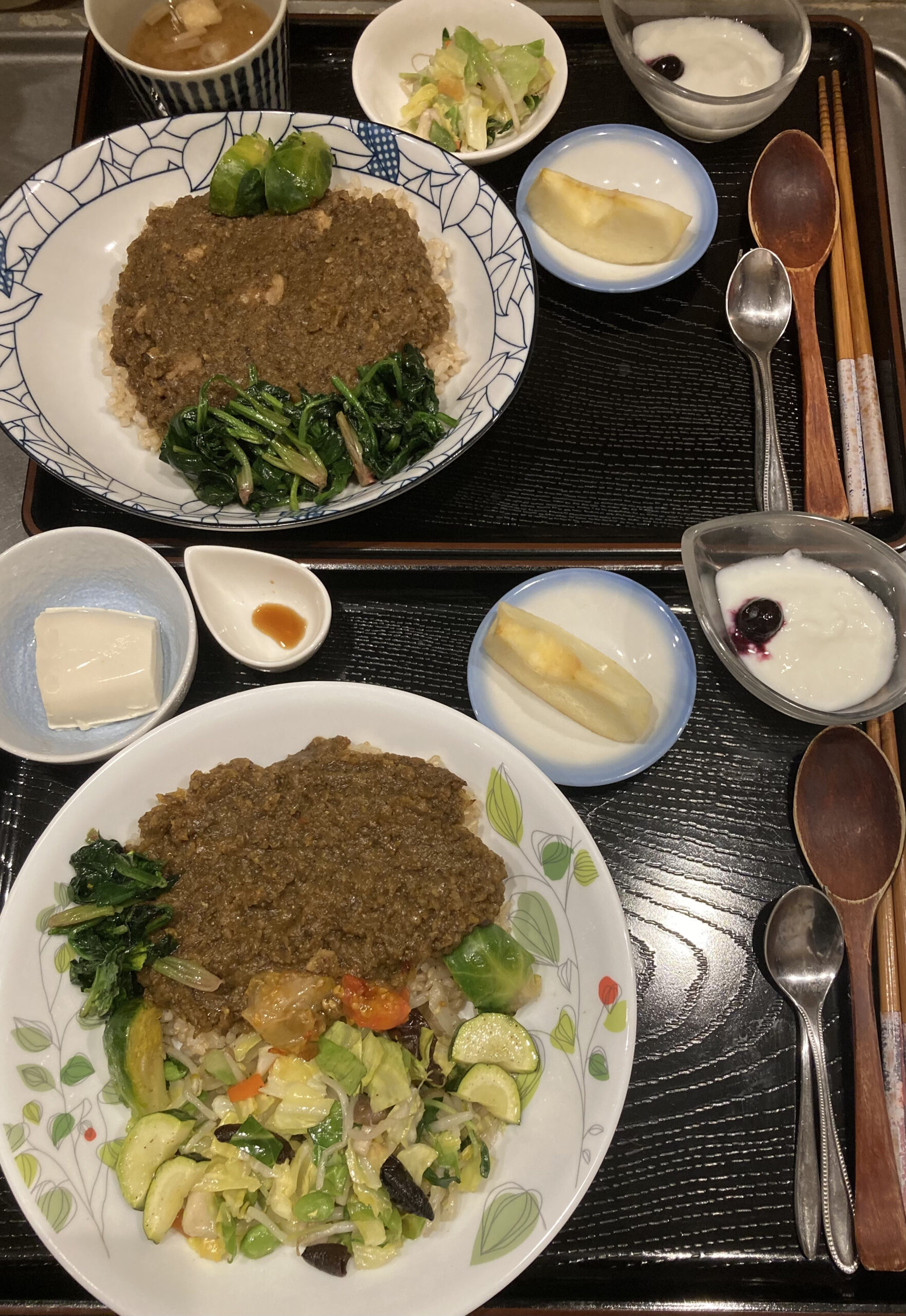 英国から来訪のお客様が二度目のご来店。銘柄鶏チキンカレーに特別栽培のほうれん草バター・オリーブオイル炒め、お豆腐付き野菜カレー。食前に京都宇治抹茶入り緑茶。お二方とも大満足でお帰りになられました😊😊。年に2回ほど近隣の上野グリーンクラブ(盆栽)に出向かれ、次回の来日は今年11月予定とのことでした。