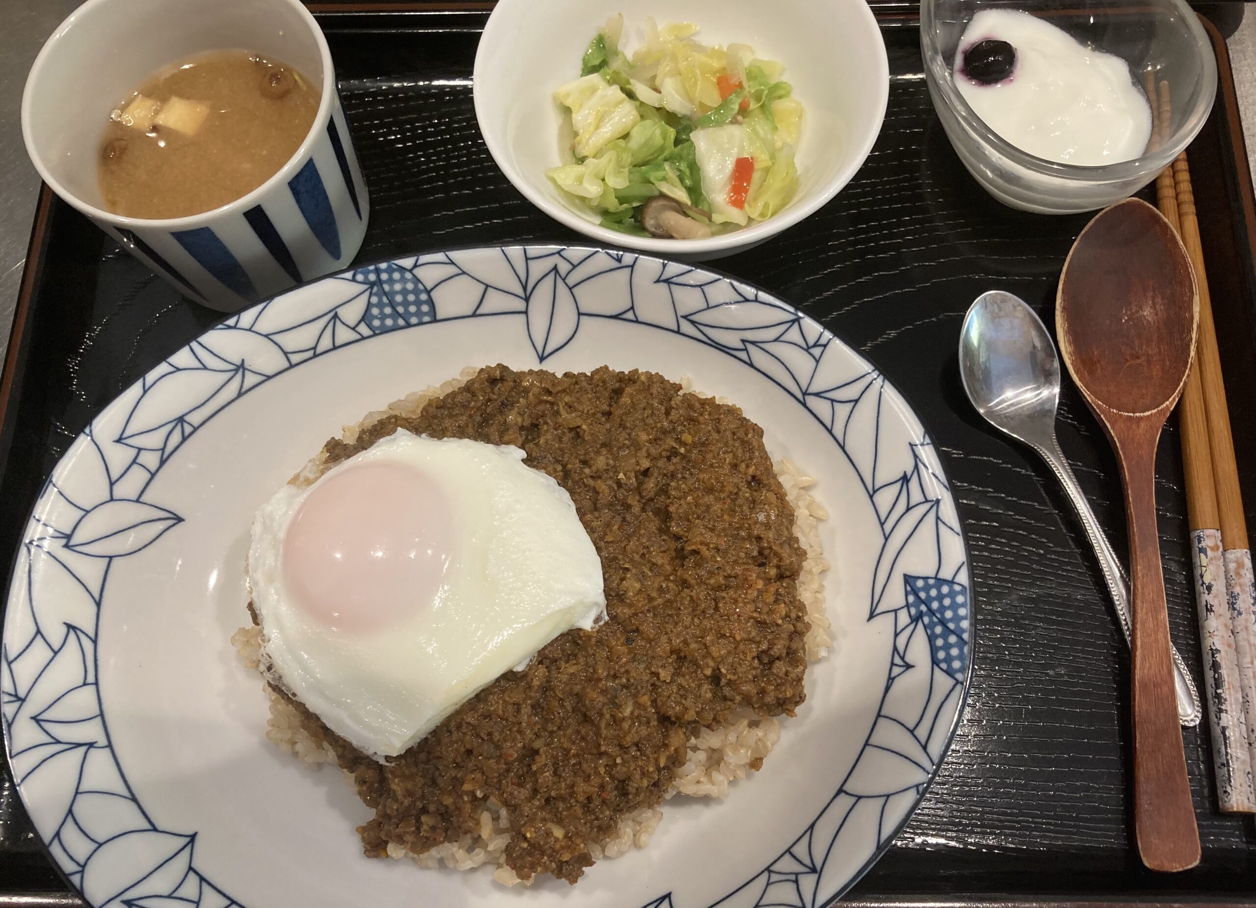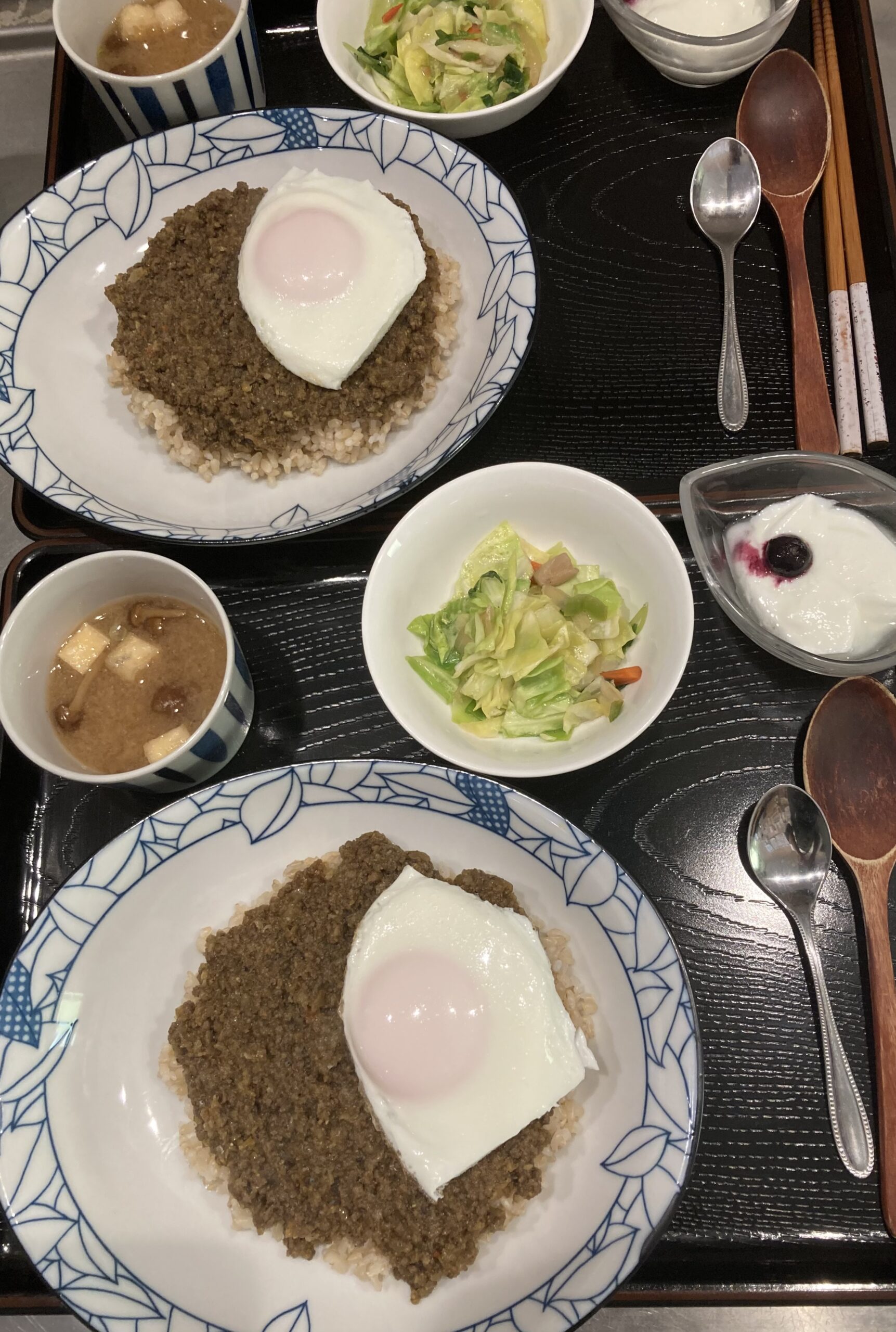 当店ご利用3度目のお客様はご友人の方と久々の来訪。野菜カレーに目玉焼き🍳、銘柄鶏チキンカレー。お二方とも大満足でお帰りになられました😊😊。