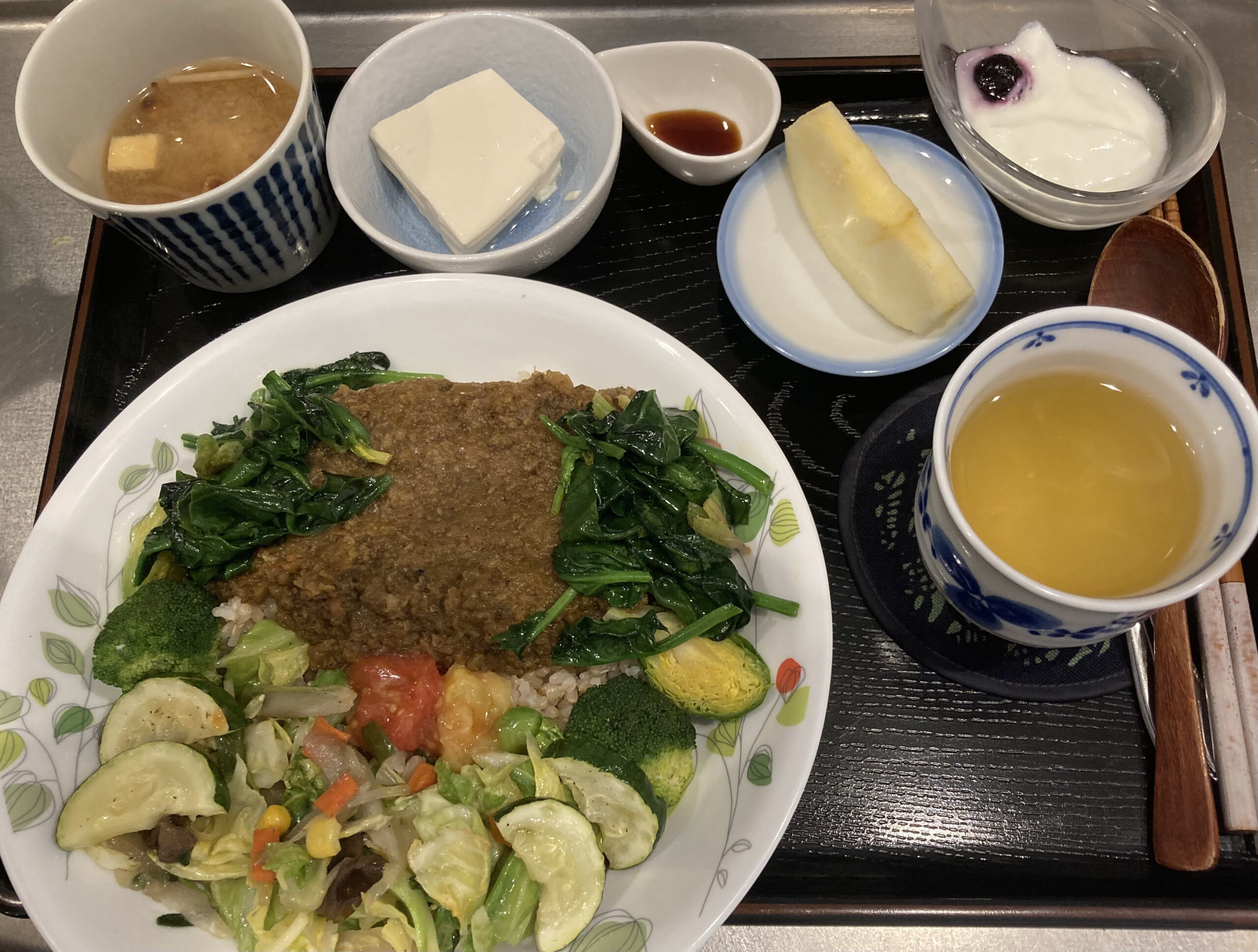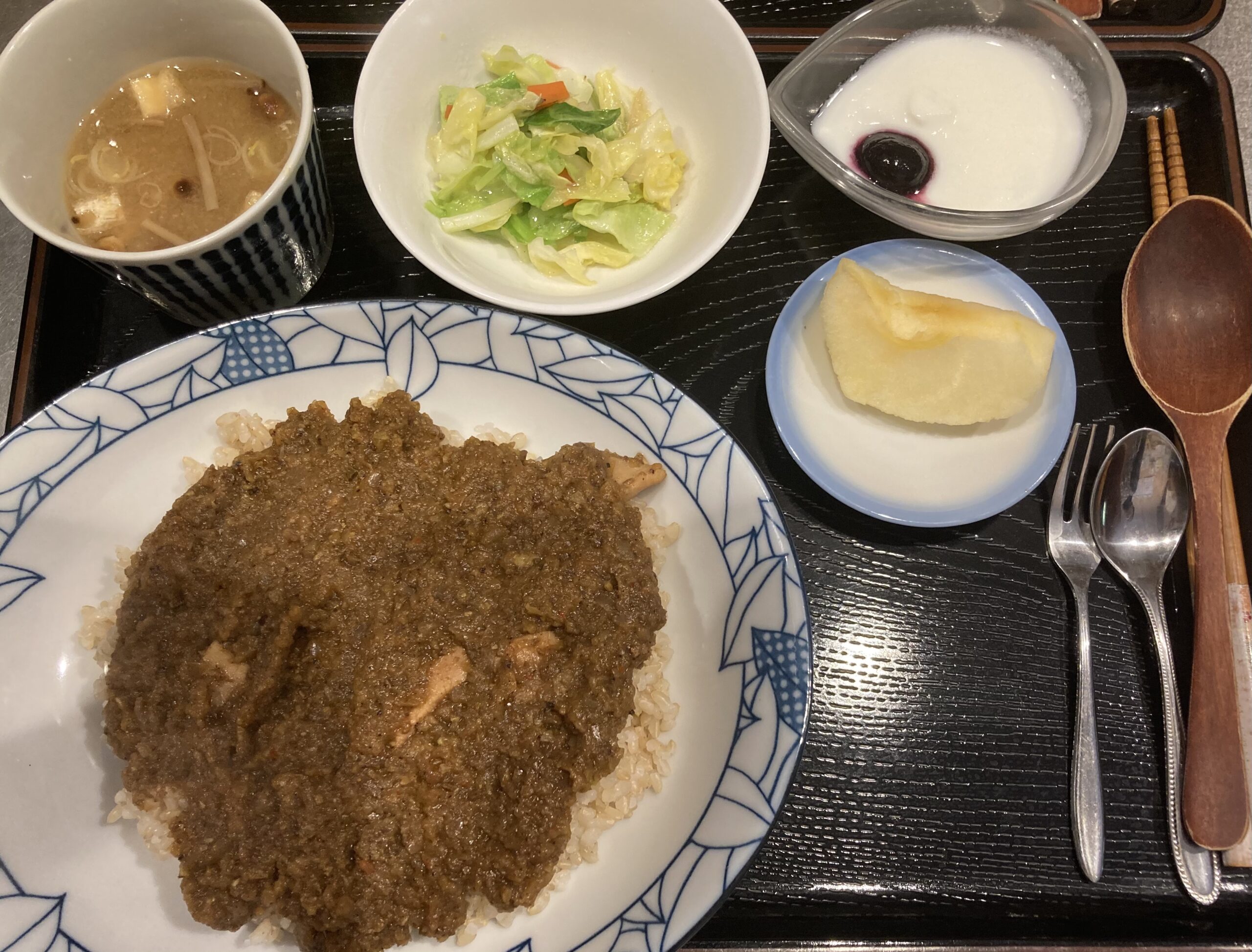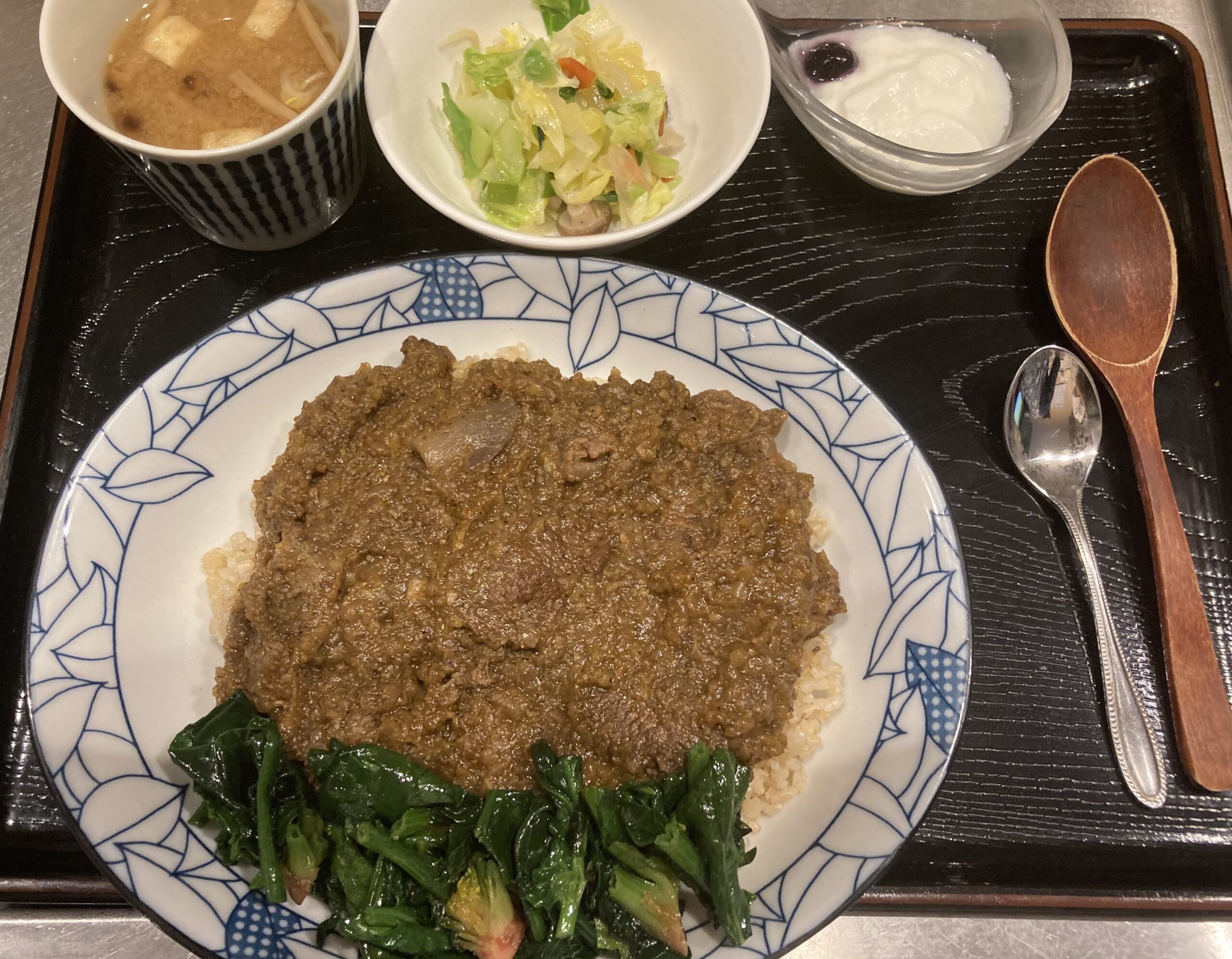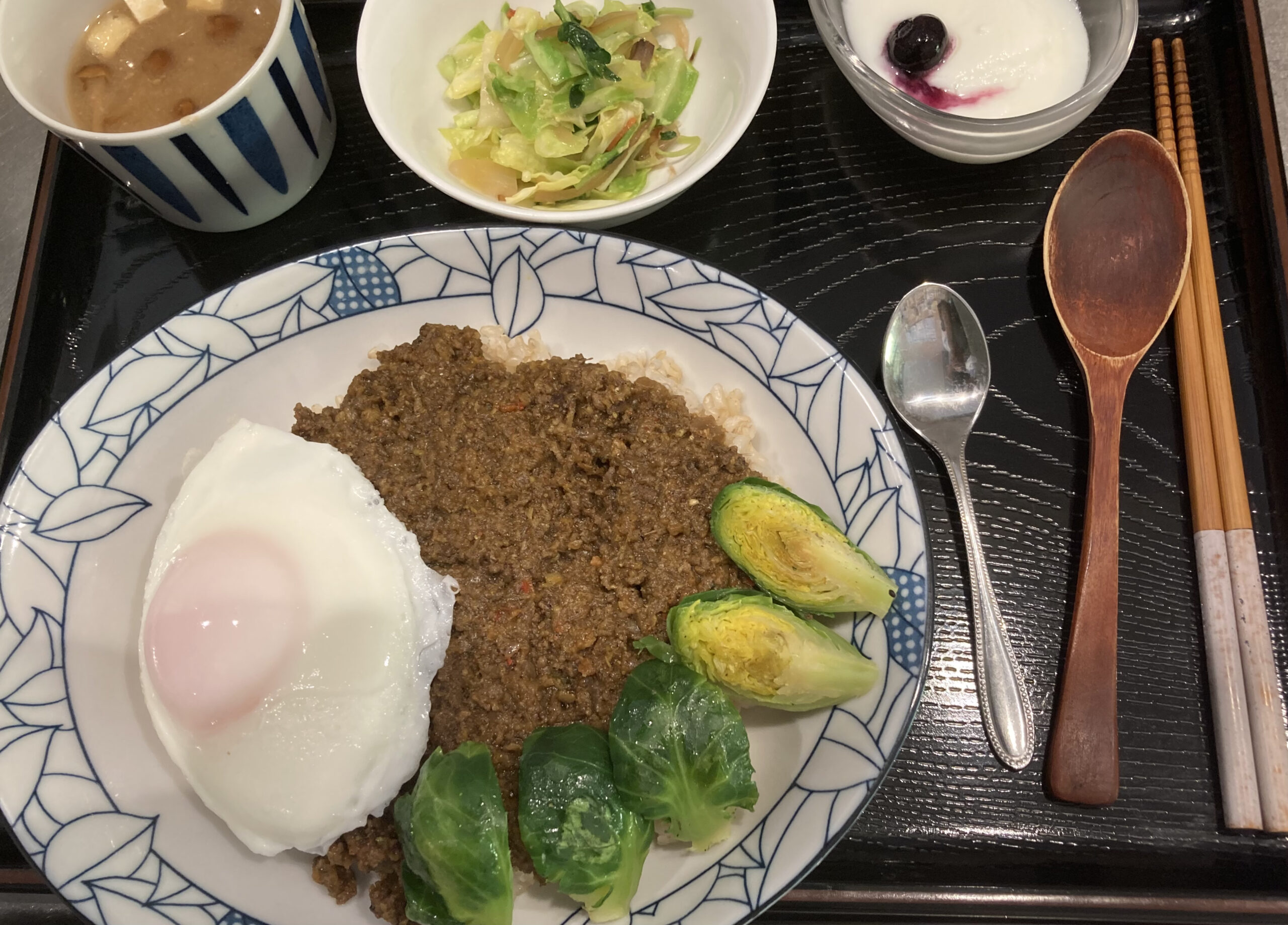 常連のお客様は辛口🌶の岩手短角牛キーマカレーに特別栽培の芽キャベツオリーブ焼き。