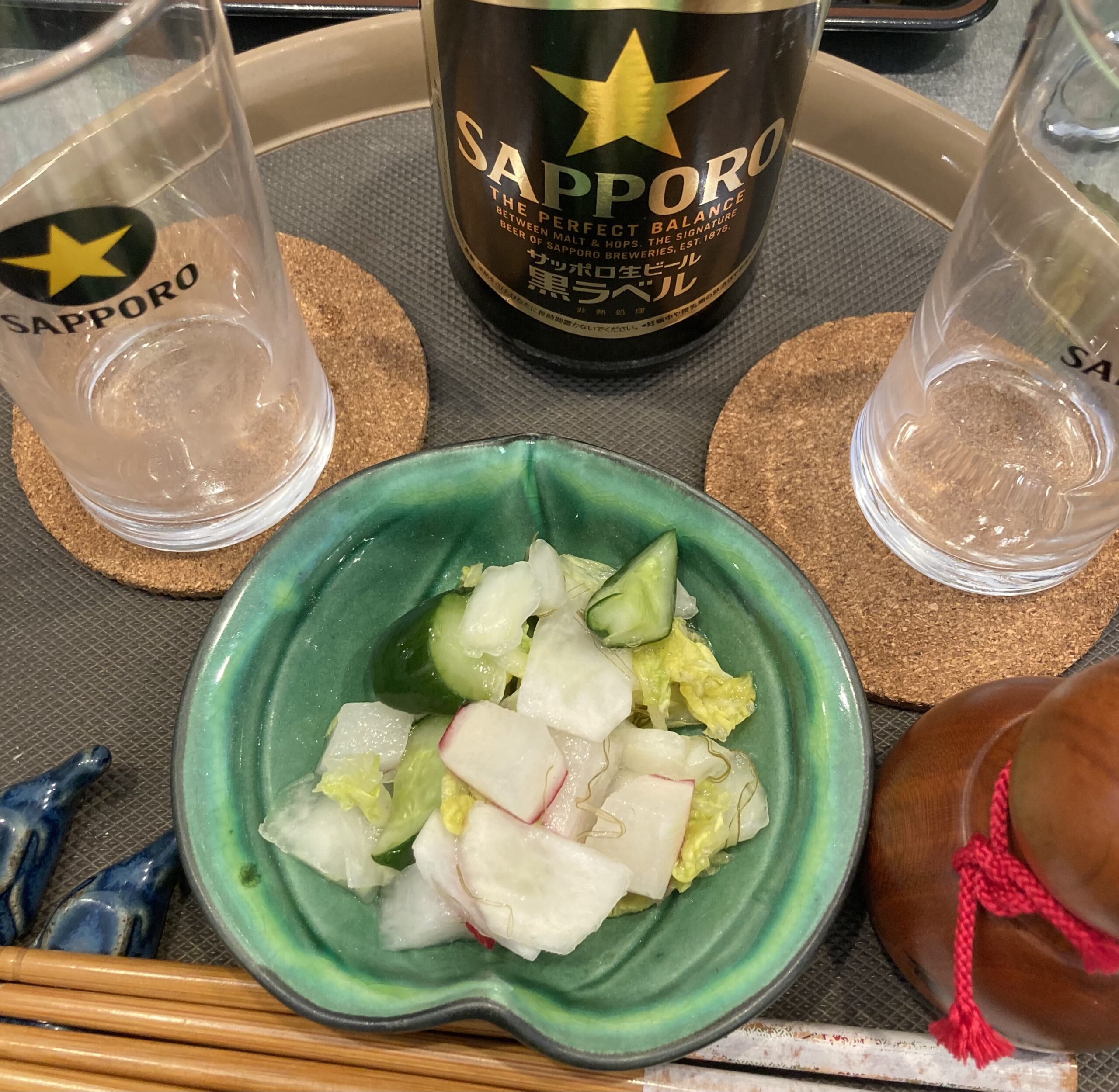カナダから来訪のお客様は辛口🌶の岩手短角牛キーマカレー、ハンバーグカレー。食前に有機野菜使用の自家製無添加お漬け物、サッポロ黒ラベル。「来年もまた来ます!」と😊😊。