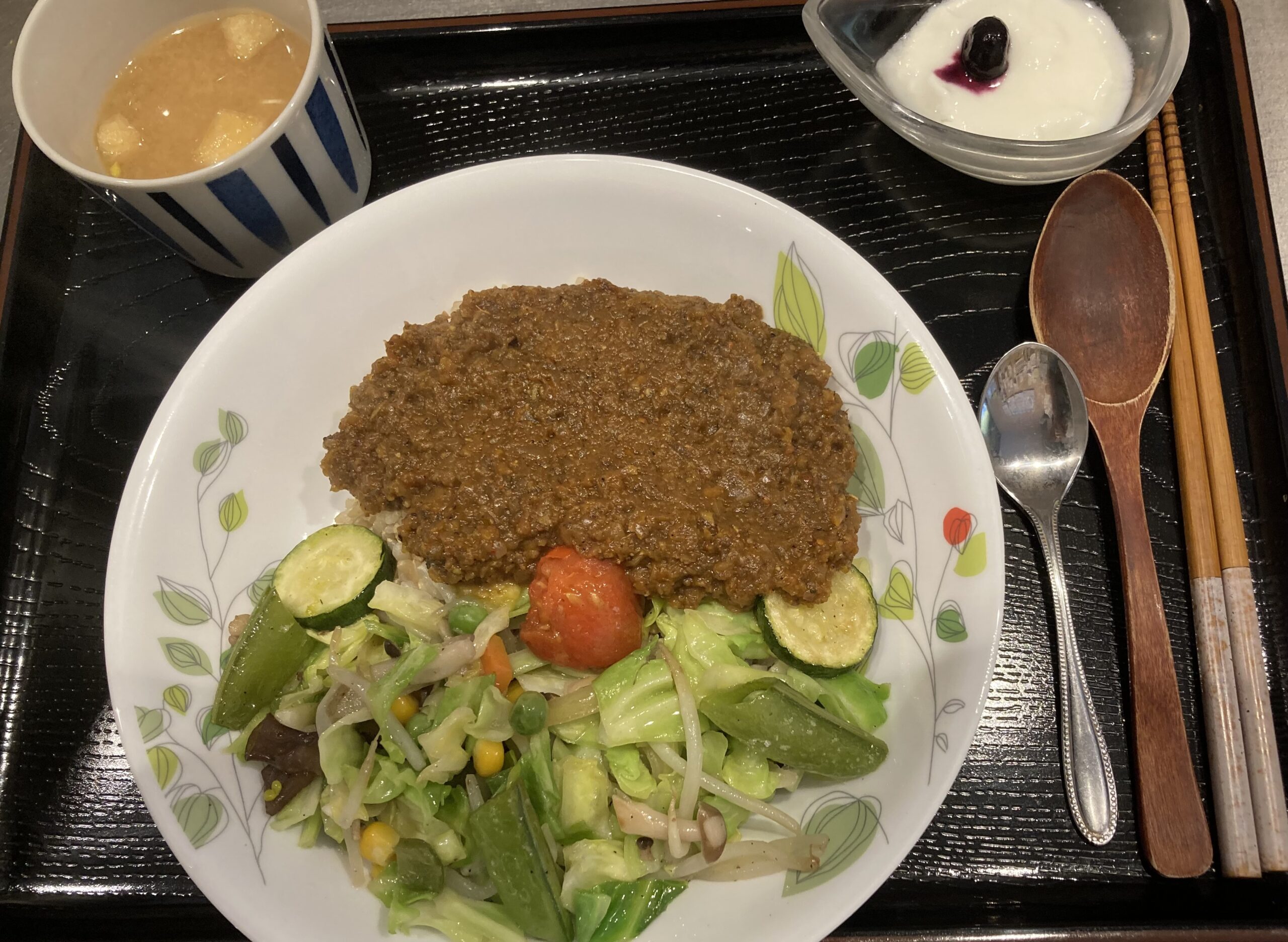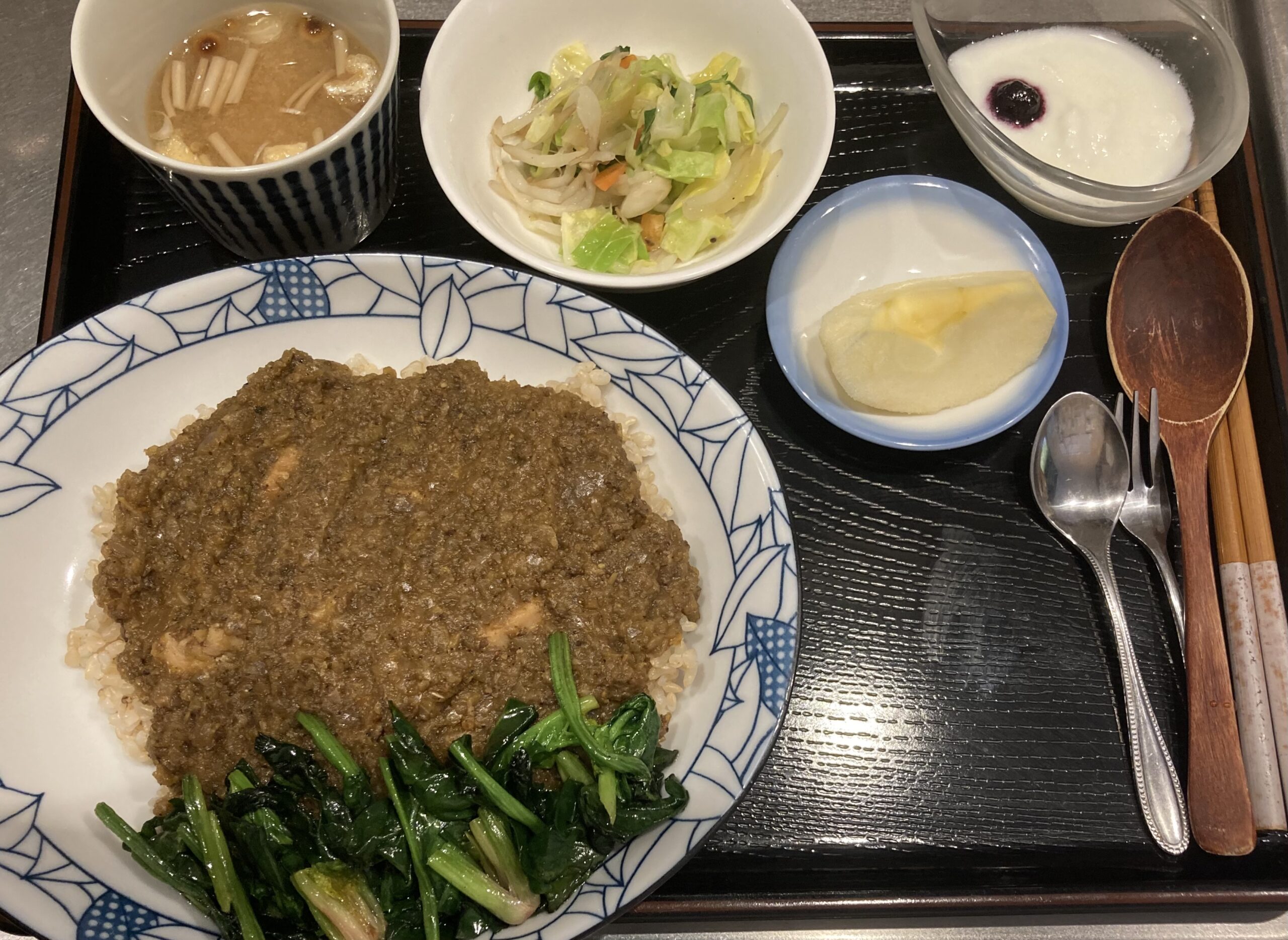 近隣大学で教鞭を執っている常連のお客様(米国ご出身)がご来店。銘柄鶏チキンカレーに特別栽培のほうれん草バター・オリーブオイル炒め。ほうれん草の美味しさに感動されていました😊😊。