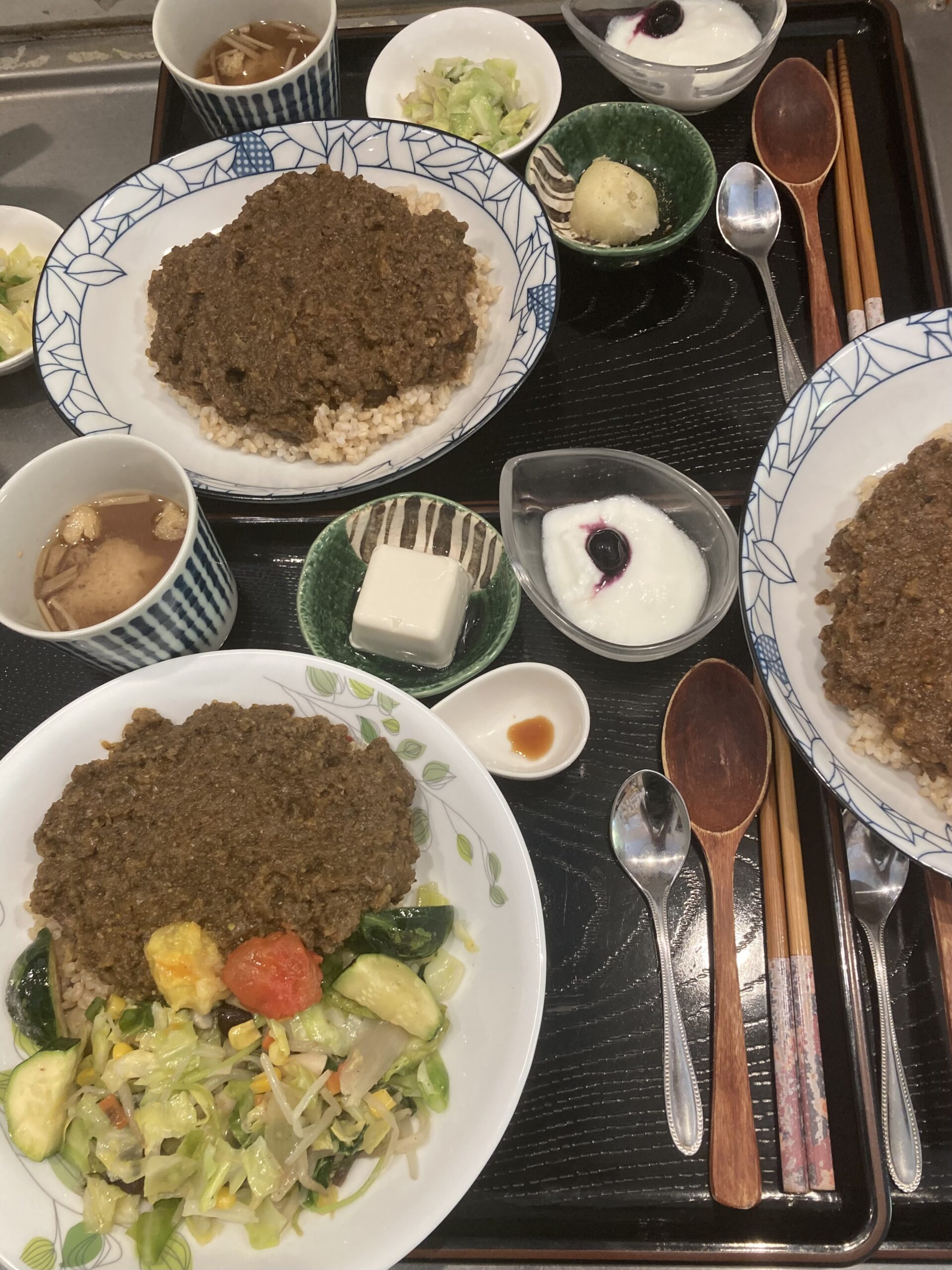 フランスから来訪のご家族は辛口🌶の岩手短角牛すじ肉カレー、お豆腐付き野菜カレー。辛さ加減もちょうど良かったとのことで、皆さん😊😊でした。