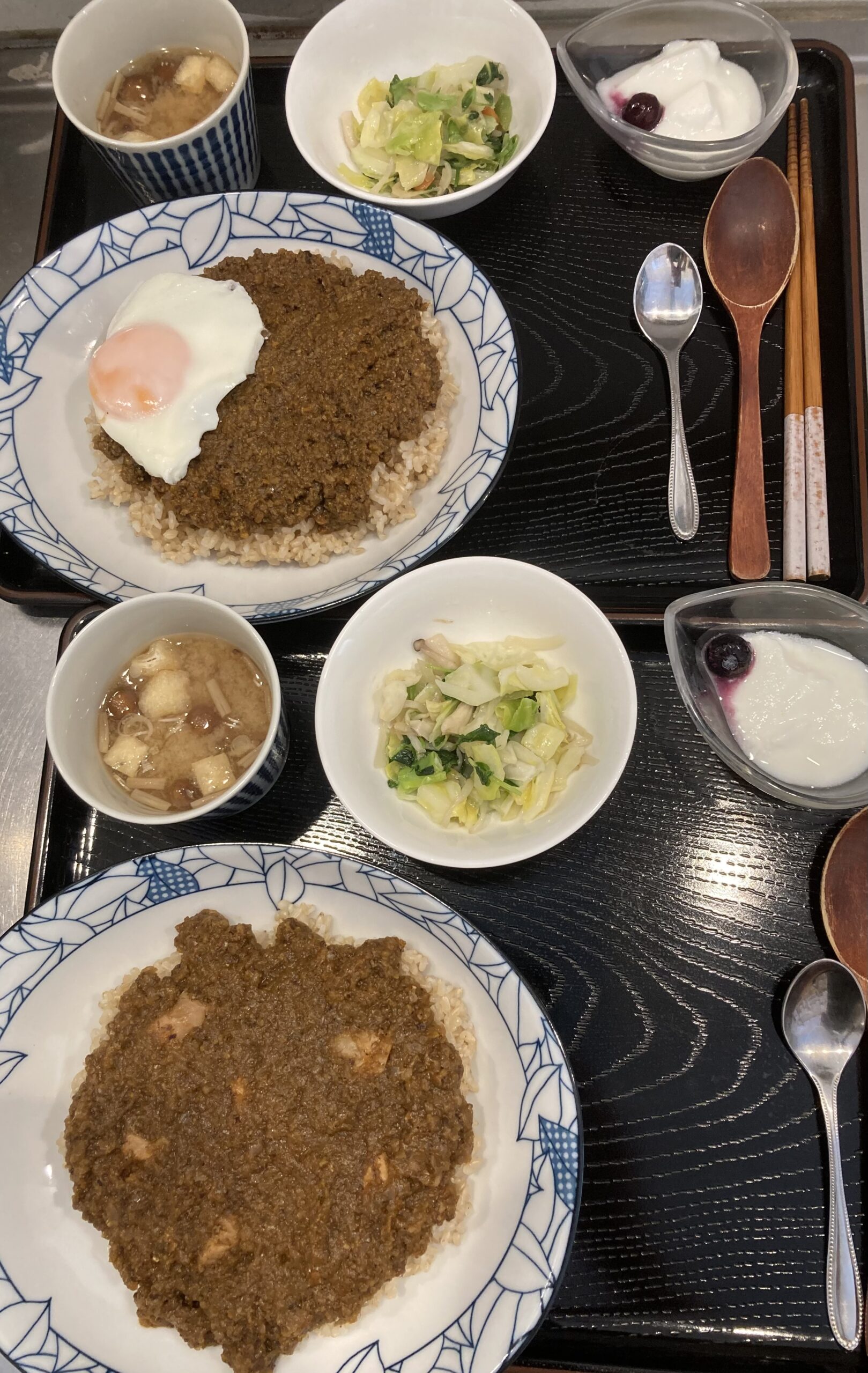 初来訪のお若いカップルは辛口🌶の岩手短角牛キーマカレー(男性)、中辛の銘柄鶏チキンカレー(女性)。辛口キーマの辛さ加減に関して男性の方は「辛旨でした!」と😊😊。