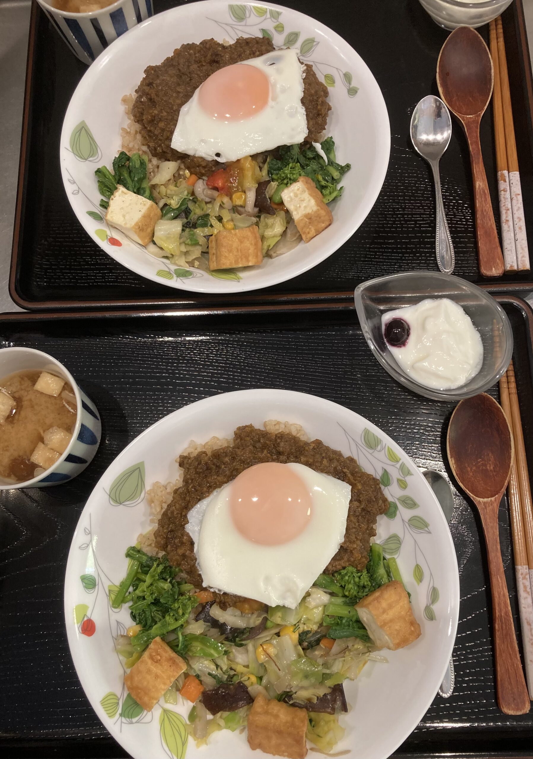 初来訪のご夫婦はお二方とも野菜カレーに完全栄養食の目玉焼き🍳トッピング。結構お待たせしてしまいましたが、😊😊でお帰りになられました。