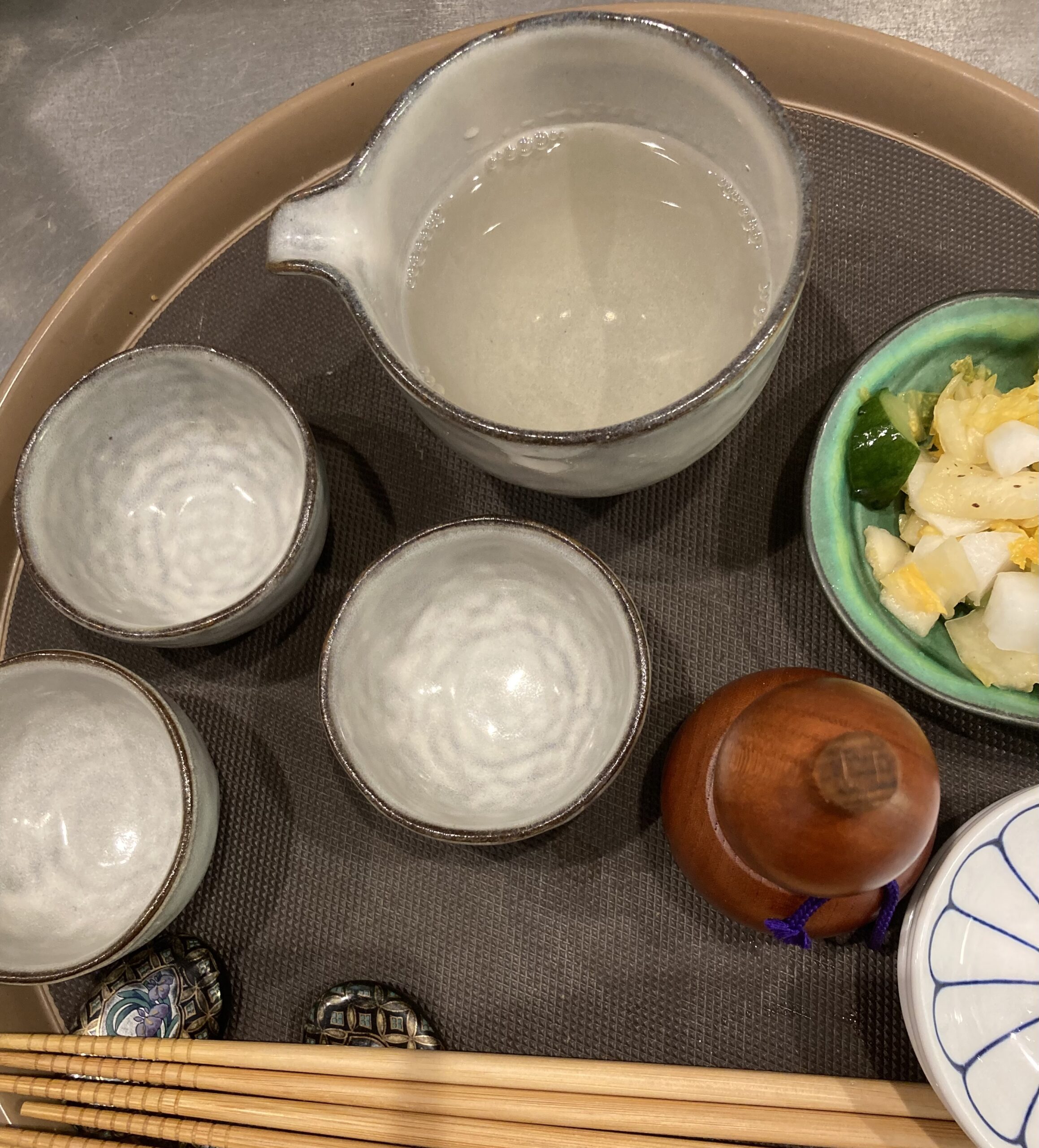 米国から来訪のご家族が三名様でご来店(30代前半くらいのお若い男性の方が7年前、おひとりで当店を来訪)。辛口🌶の岩手短角牛ハンバーグカレー、お豆腐付き野菜カレー。食前に有機野菜使用の自家製無添加お漬け物と山形県の純米吟醸・生原酒「東の麓」(限定酒)。食後に岡山蒜山のアイスクリーム。