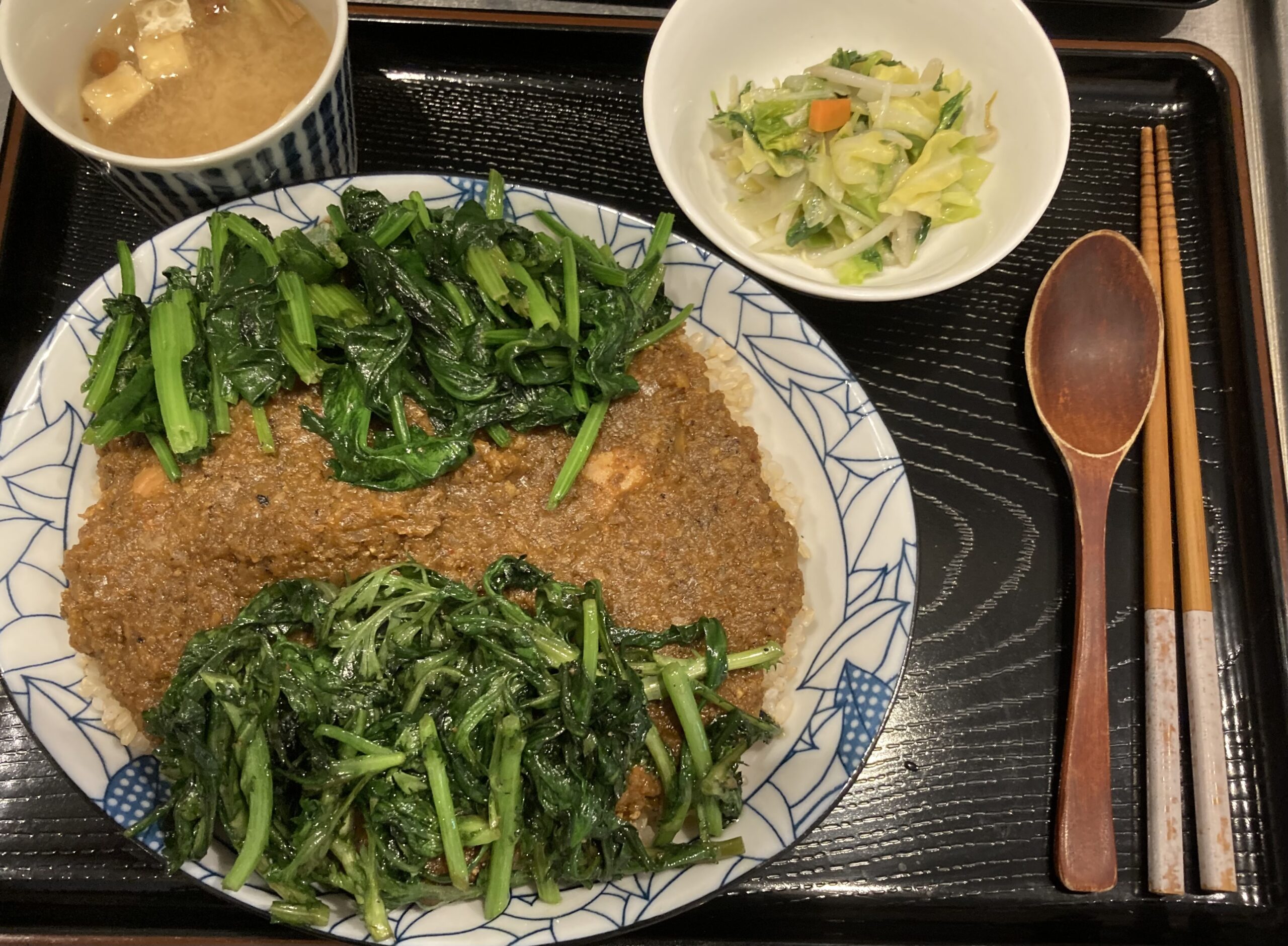 常連のお客様は大辛🌶🌶🌶の銘柄鶏チキンカレー(ご飯🍚もルーも大盛り)、特別栽培の春菊ごま油炒め、ほうれん草バター・オリーブオイル炒め。今回も😊😊でした。