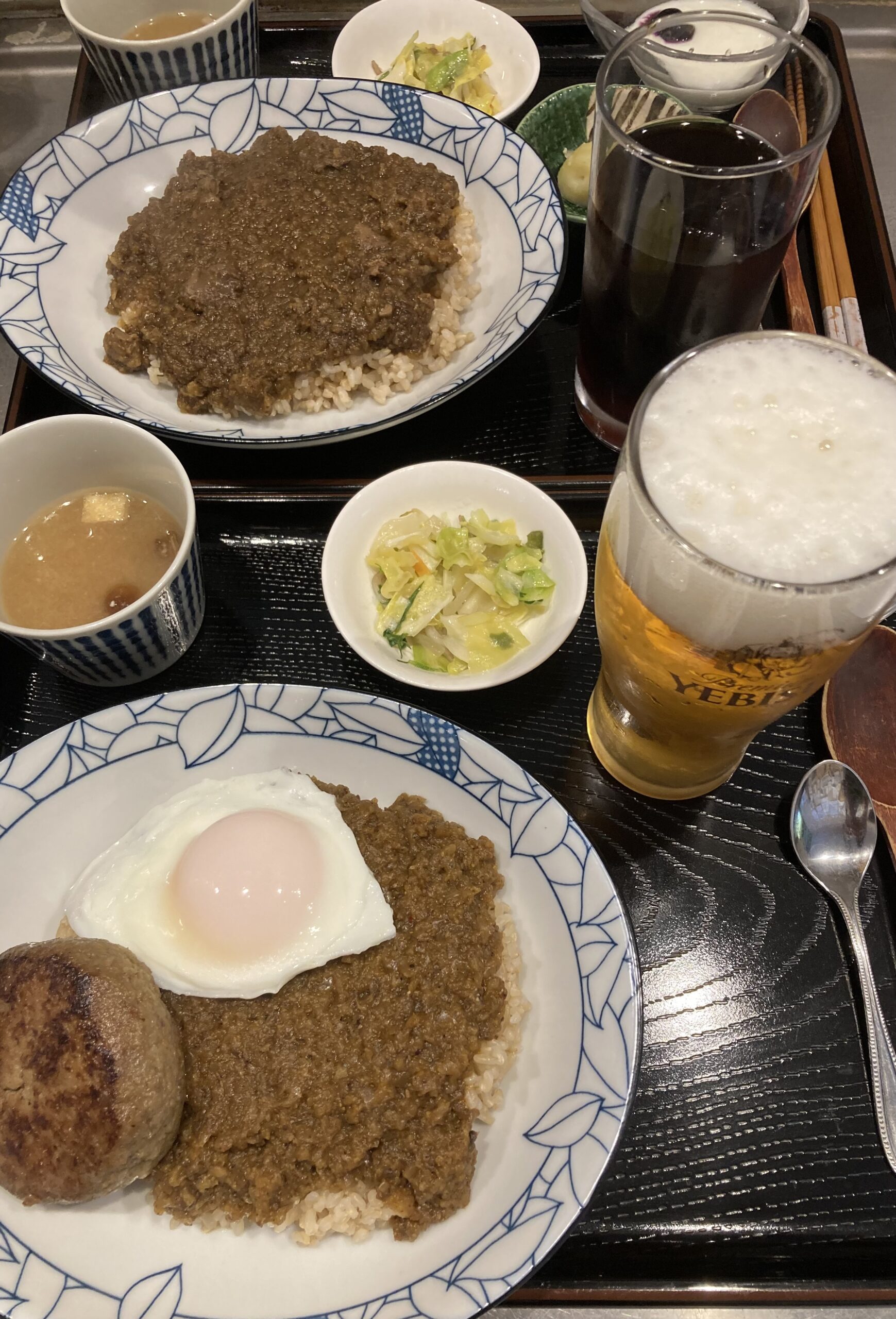 韓国から来訪のお若い男性(若手人気ミュージシャンのような出で立ち)は岩手短角牛すじ肉カレー、オリジナルブレンド・ハンドドリップ・アイスコーヒー、ハンバーグカレー、恵比寿ビール。お二方とも大満足でした😊😊。