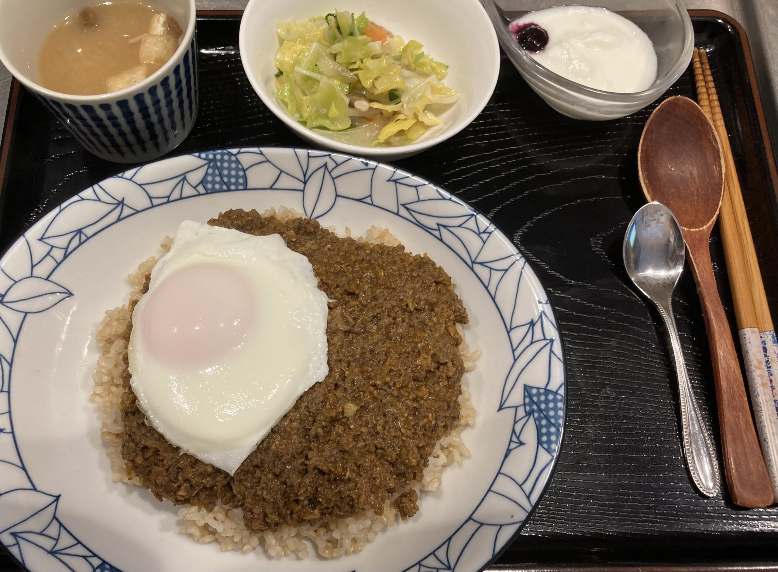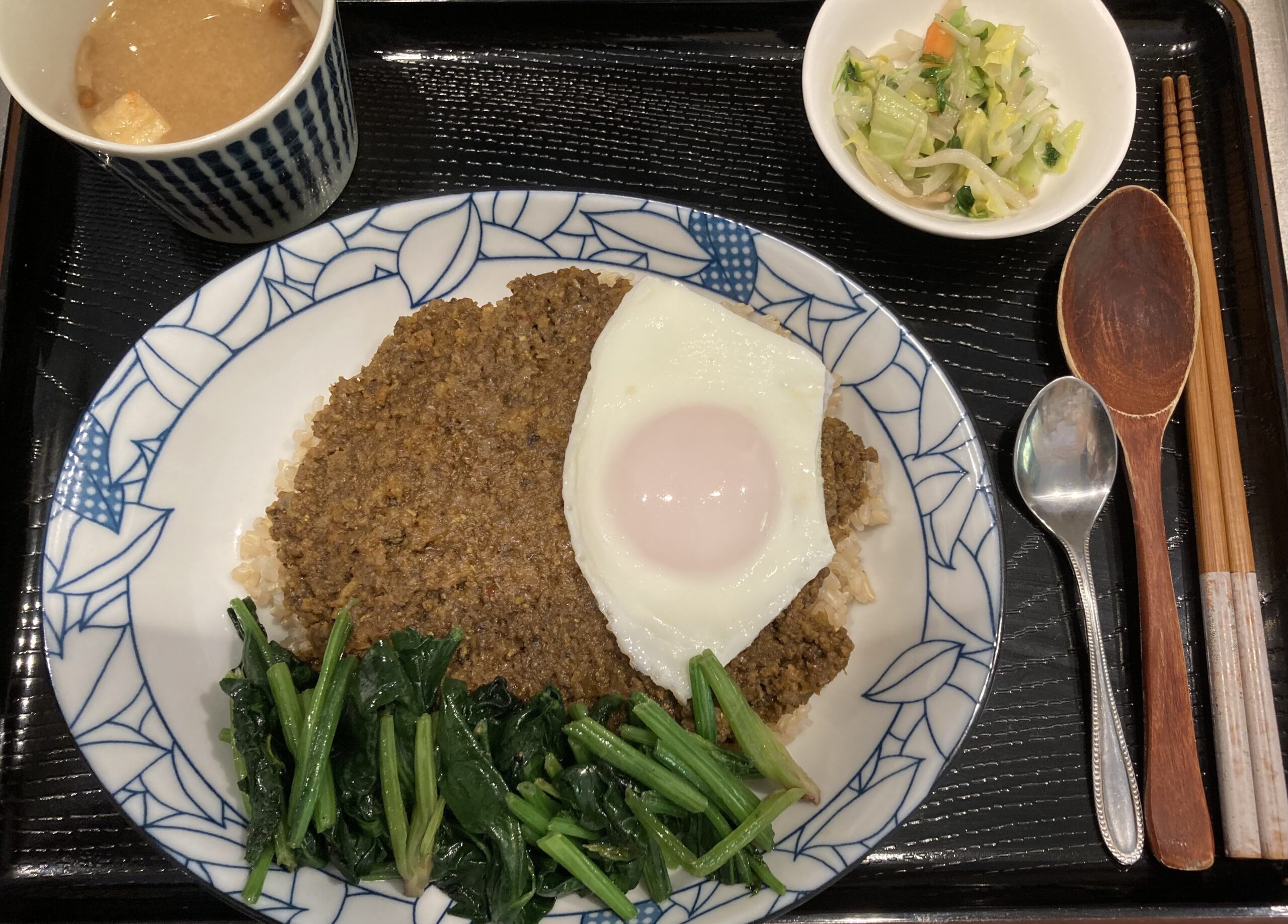 ドイツから来訪のお若い男性は岩手短角牛キーマカレーに特別栽培のほうれん草バター・オリーブオイル炒め。日本のアニメが大好きで独学で日本語も学んでいるとのこと。流ちょうな日本語で「滅茶苦茶美味しい !!!」と😊😊でした。
