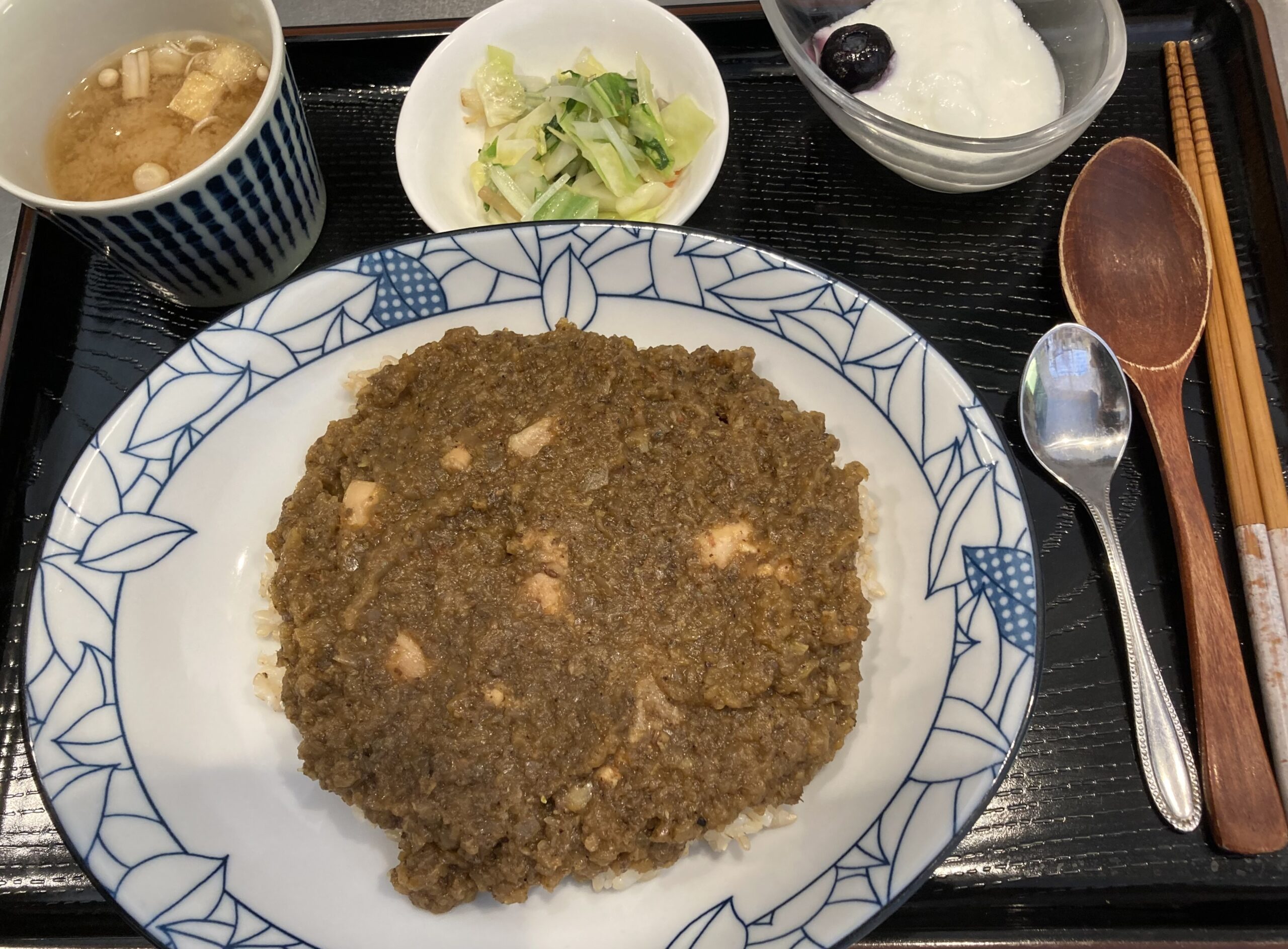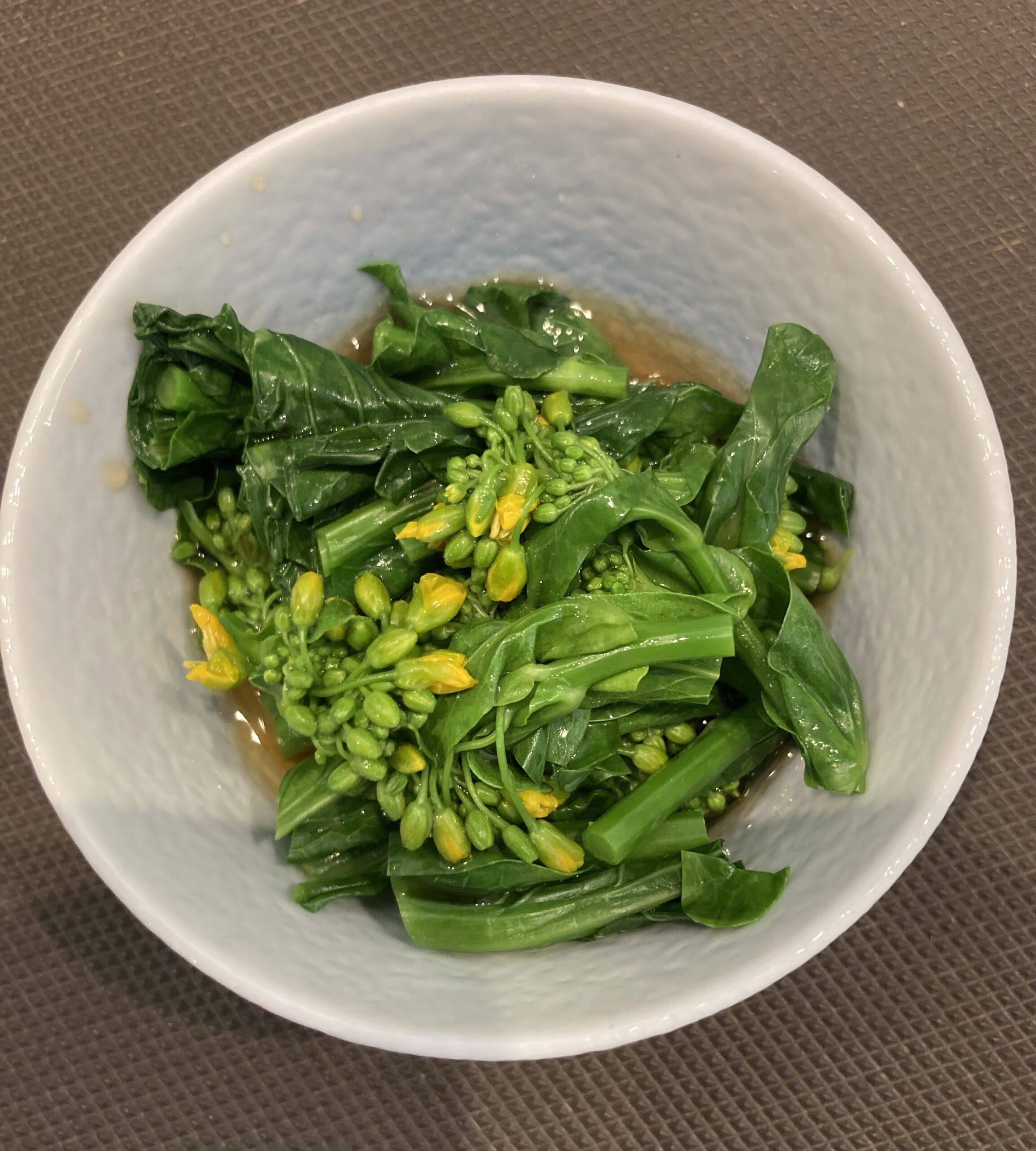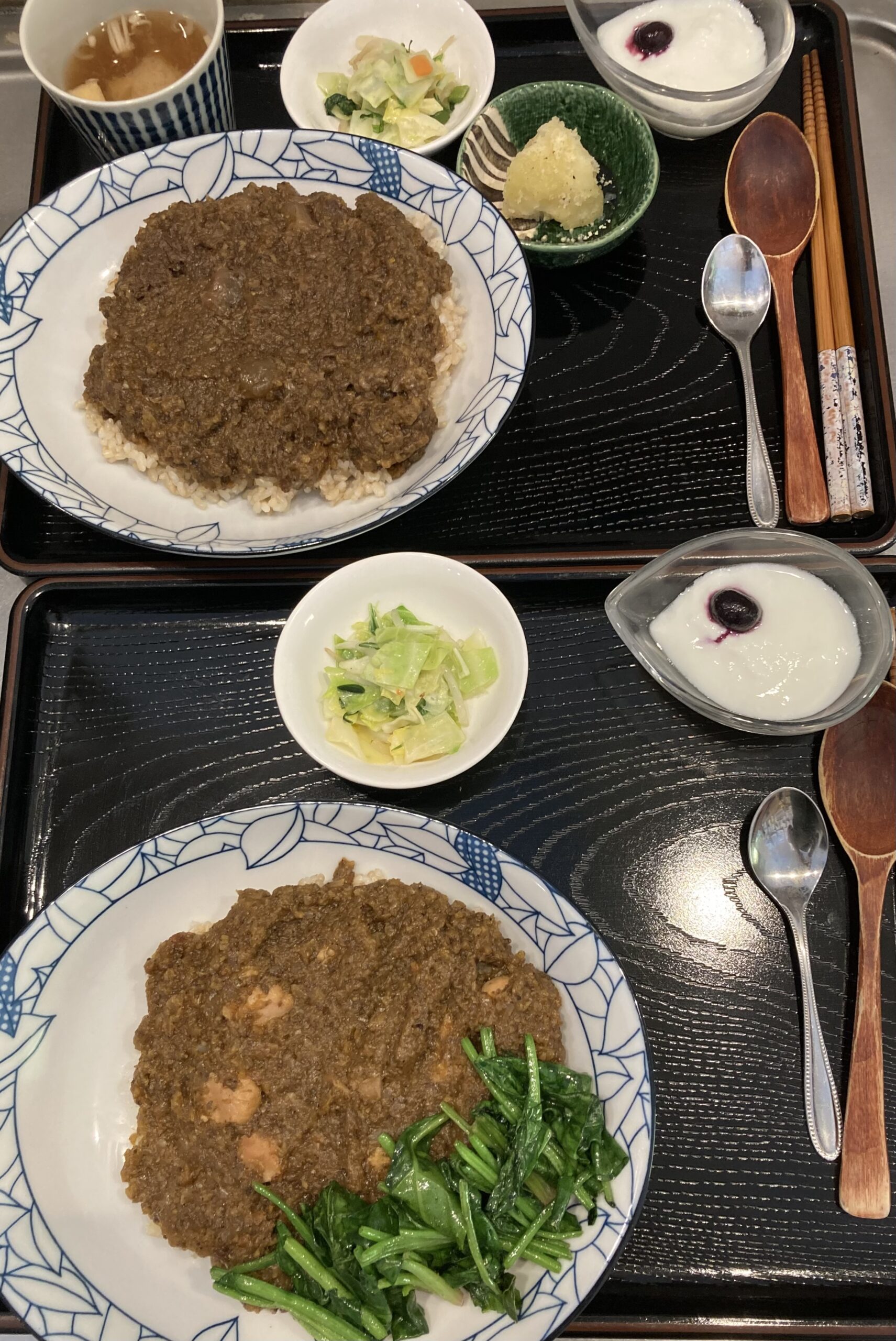 米サンフランシスコから来訪のお客様は銘柄鶏チキンカレーと特別栽培の菜花おひたし。カレー、おひたしの美味しさに感動されていました😊😊。