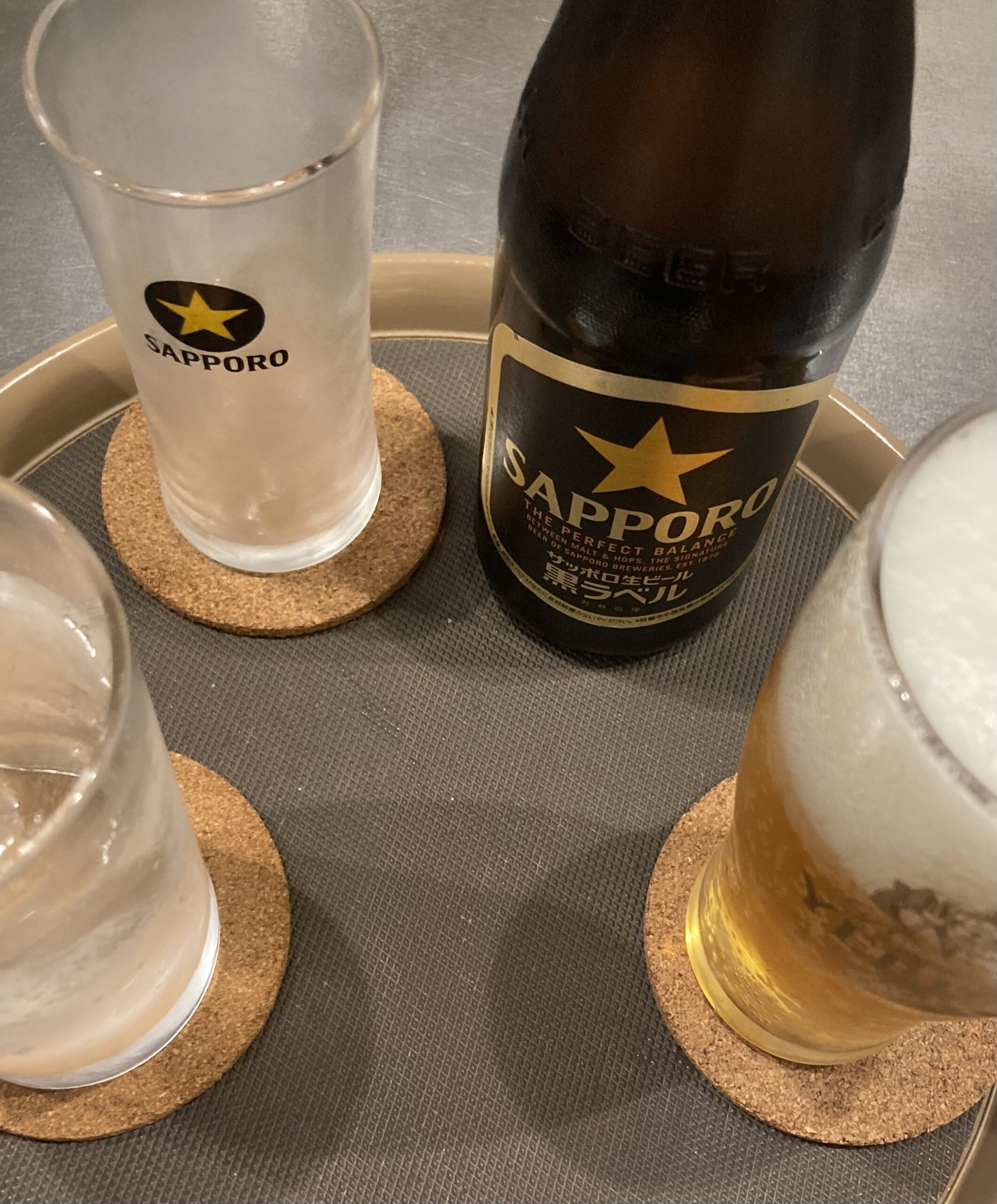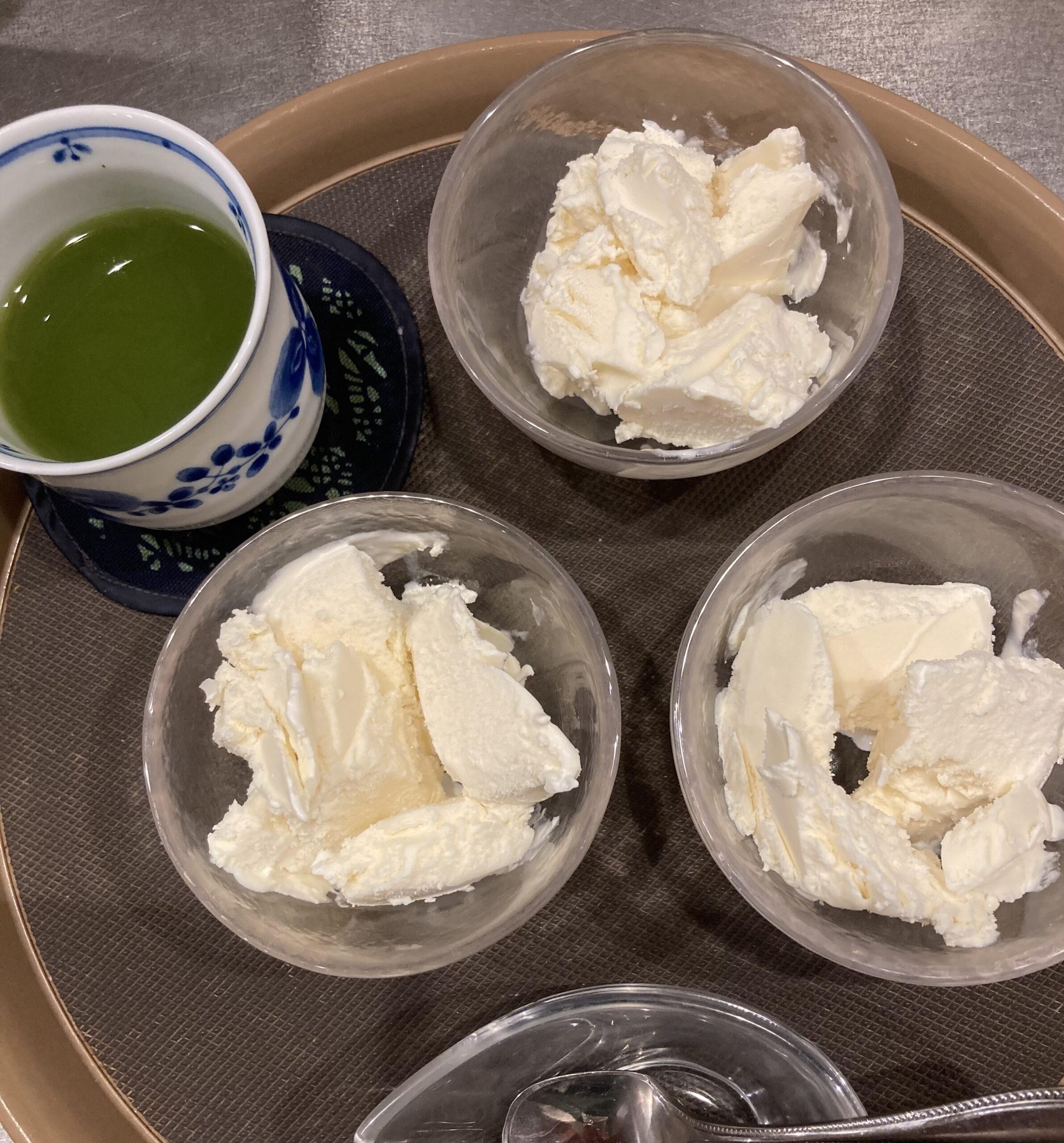 フランスから来訪のご家族はお豆腐付き野菜カレー、銘柄鶏チキンカレー、木熟ミニトマト、特別栽培のほうれん草バター・オリーブオイル炒め、黒舞茸ごま油炒め。食前にサッポロ黒ラベル、恵比寿ビール、ソーダ水。食後に京都宇治抹茶入り緑茶、岡山蒜山のアイスクリーム。