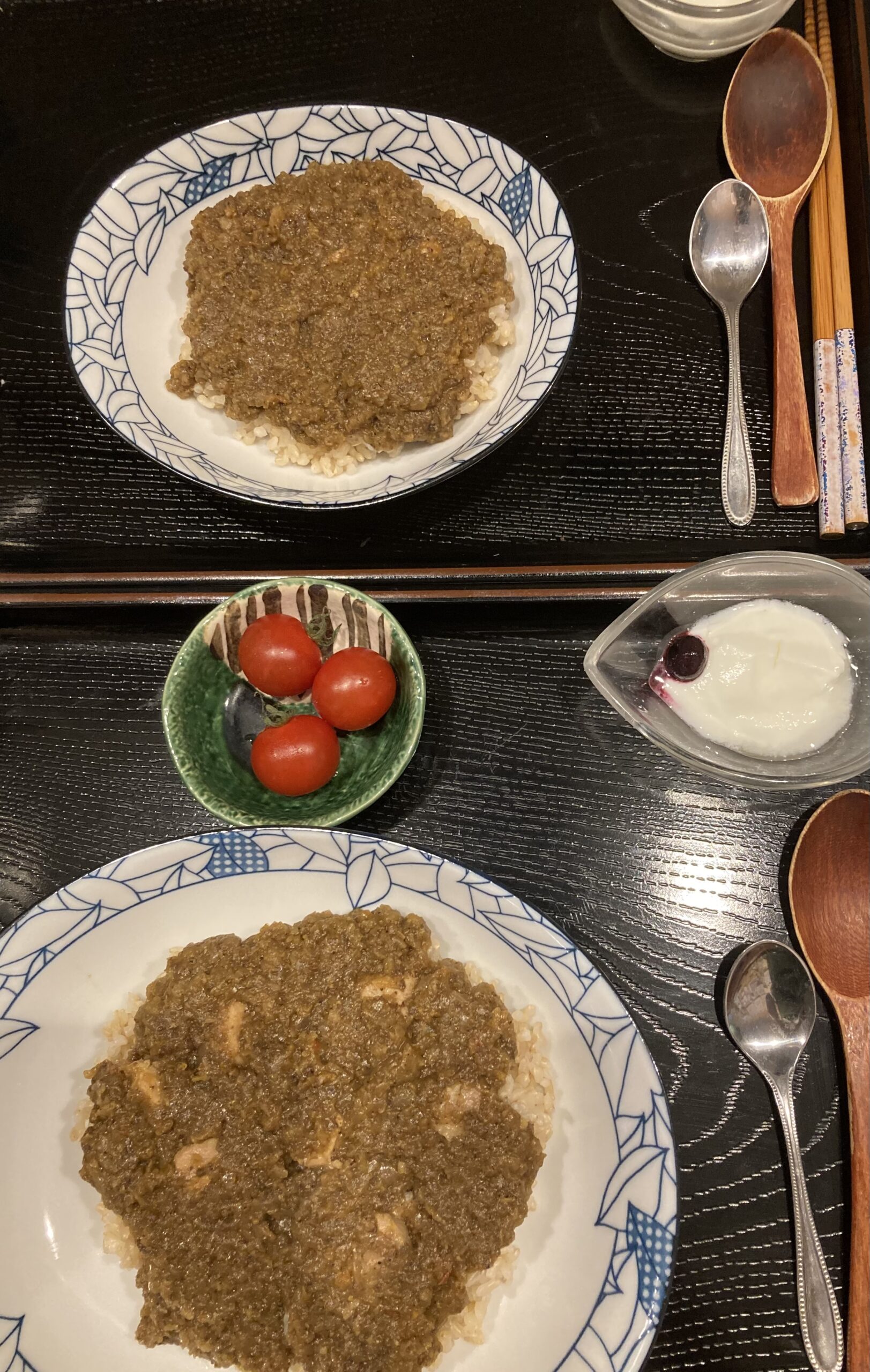 米サンディエゴから来訪のお若いカップルは岩手短角牛キーマカレー(男性はしびれる激辛🌶🌶🌶🌶🌶🌶🌶🌶、女性は目玉焼き🍳なし)。今までかなり辛いカレーを食べても平気だったようですが、今回は苦笑されながら「ちょっと辛過ぎた感じです...。でも美味しかった!」と😊😊でした。